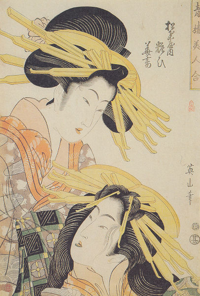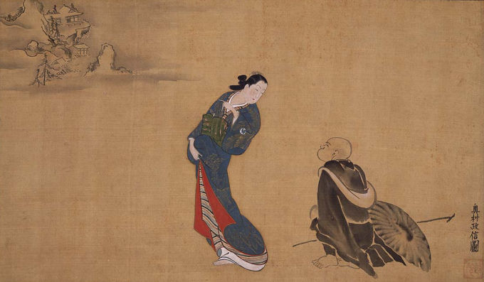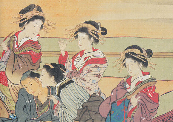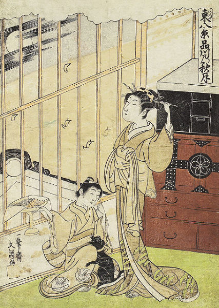 書見・筆美人(画像は葛飾応為「夜桜美人図」)