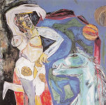 渡辺東郊(1848-不明)は、会津若松城下屋敷町に生まれた。祖父光蔵は、武をもってきこえ、特に柔術をよくし、屋敷内に修練所を設けて多くの青年を薫陶していた。しかし、東郊は、生来虚弱体質で、少年の頃は刀槍をとることが出来なかったので自ら画道を志し、13歳の時に遠藤香村にした。